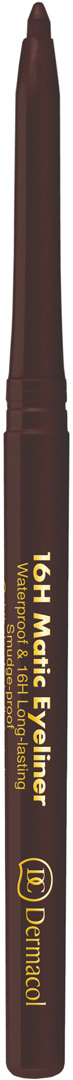 Obsahuje vysoké množstvo intenzívnych farebných pigmentov, vďaka ktorým krásne vykreslíte očnú linku iba jednou aplikáciou. Krémová a dlhotrvajúca textúra vydrží na vašich očiach až 16 hodín. 16H Matic Eyeliner sa ľahko nanáša, doslova kĺže po očnom viečku a zanecháva okamžitý efekt. Ceruzka je vhodná na nalíčenie vnútornej linky oka tzv. WATER LINE = zvýraznením spodnej vnútornej linky sa oči opticky zväčšia a rozjasnia; ideálne pre menšie alebo unavené oči. Textúra zostáva po nanesení mäkká a krémová cca 40 sekúnd, po zaschnutí vydrží až 16 hodín bez rozmazania a vyblednutia. Vďaka svojej stabilite vydrží aj v extrémne vysokých teplotách - max. 40 °C.