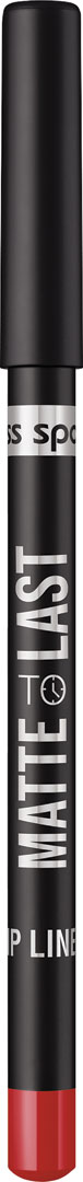 Ceruzka na pery miss sporty Matte to Last poskytuje zamatovú, matnú farbu po celý deň. Krémové zloženie sa ľahko rozotiera a umožňuje presnú aplikáciu. Vyskúšajte ceruzku na pery spoločne s tekutým rúžom Matte to Last! Zamatovo matný finiš,Krémová textúra, Dlhotrvajúce zloženie, Jednoduchá a presná aplikácia, Dokonale zladené odtiene s Matte to Last tekutými rúžmi.