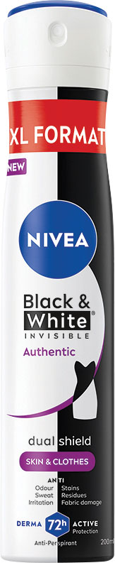 Sprej antiperspirant Black & White Authentic vás ochráni pred pachom potom a podráždením. Jemná starostlivosť, ktorá funguje.