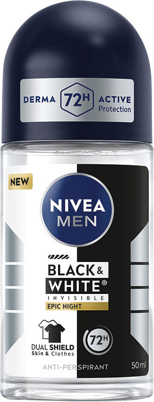 Guľôčkový antiperspirant pre mužov Black & White Epic Night vás ochráni pred pachom, potom a podráždením. Jemná starostlivosť s Derma Active formulou, ktorá funguje.