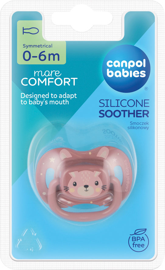 Cumlík z kolekcie Cute Animals vaše bábätko uvoľní a upokojí. Symetrický cumlík dobre padne do úst dieťaťa bez ohľadu na to, ako je umiestnený, a jeho tvar je považovaný za najviac fyziologický. Špička je vyrobená z najkvalitnejšieho, bezpečného a jemného silikónu. Je bez chuti a zápachu, čo bábätku uľahčuje prijatie cumlíka. Špeciálne profilovaný štítok umožňuje dieťaťu voľne dýchať nosom a minimalizuje odtlačky cumlíka na jemnú tvár dieťaťa. Ďalšie vetracie otvory umožňujú pokožke dýchať a zabraňujú podráždeniu. Pohodlný úchyt cumlíka uľahčuje jeho podávanie dieťaťu a umožňuje pripevniť retiazku alebo stuhu na cumlík, ktorá ochráni cumlík pred stratou alebo pádom na zem a zašpinením. Symetrický cumlík Canpol babies 0-6m Cute Animals je pevný a odolný proti deformácii, bezpečný a ľahko sa udržuje v čistote. Pri výrobe neboli použité BPA ani iné škodlivé látky. Symetrický silikónový cumlík Canpol babies je odporúčaný pre deti od 0 do 6 mesiacov. Canpol babies symetrický cumlík 0-6m Cute Animals je dostupný v troch roztomilých designoch a rôznych veľkostiach - rastie s vašim bábätkom.
