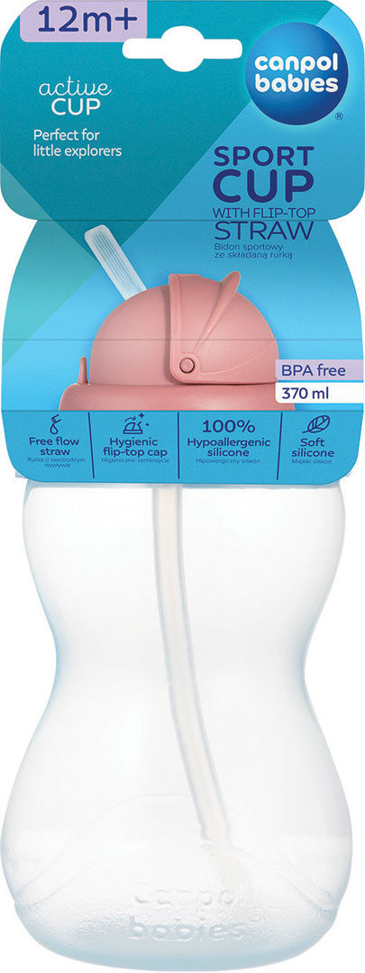 Praktická športová fľaša s objemom 370 ml bola navrhnutá tak, aby deti boli stále hydratované pri hre, učení a dobrodružstvách na čerstvom vzduchu alebo v škôlke. Skvelá voľba pre batoľatá, ktoré už vedia samostatne piť a deti chodiace do škôlky. Mäkká siliknová slamka s voľným prietokom je šetrná k citlivým ďasnám dieťaťa. Športová fľaša je vyrobená z nerozbitného a bezpečného plastu. Je ľahká a odolná proti poškodeniu. Tvar fľaše uľahčuje držanie v detských rukách a veľký otvor uľahčuje plnenie a umývanie. Určené pre studené nápoje alebo nápoje izbovej teploty. Možno ho umývať v umývačke riadu a ohrievať v mikrovlnnej rúre. Fľaša sa otvára a zatvára rýchlo a ľahko. Uzavretá športová fľaša je tesná a netečie. Špeciálny úchyt umožňuje pripevnenie na kočík alebo pás. Športová fľaša Canpol babies so silikónovou slamkou skvele podporí dieťa na pitie vody a rozvoj správnych návykov.