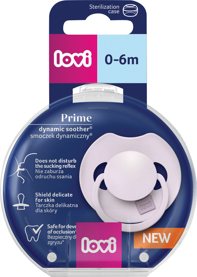 Dynamický cumlík LOVI PRIME navyše nenarúša vývoj reči a hryzenia*. Špička je sploštená a v časti pri štítku je tak tenká, že umožňuje dieťaťu voľne zatvárať ústa a správne pracovať ďasnami pri satí a poskytuje dostatok priestoru v ústach pre prácu jazyka, čo znižuje riziko maloklúzie a chýb reči*.