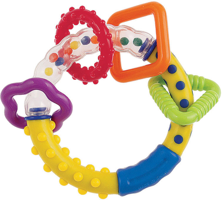 Hrkálka Farebné tvary je výbornou prvou hračkou, pretože je ľahká a praktická a má jemne zaoblené tvary. Dieťa dokáže ľahko uchopiť jej rukoväte. Hrkálka je farebná, má pohyblivé prvky rôznych textúr, ktoré povzbudzujú dieťa k cvičeniu a zábave a stimulujú jeho psychomotorický vývoj. Má jemne zaoblené tvary. Priehľadné časti hračky obsahujú malé farebné prvky, ktoré sa pri zatrasení pohybujú a vytvárajú príjemný hrkavý zvuk. Určené pre deti hneď od narodenia.