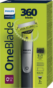 Philips OneBlade na tvár a telo na zastrihovanie, tvarovanie a oholenie ľubovoľne dlhých fúzov a na zastrihovanie a holenie všetkých častí tela. Obojstranné ostrie s dvojakou ochrannou pred porezaním, vhodné aj na citlivú pleť. Vodotesný, na mokré i suché holenie. Navyše ochranný nadstavec proti porezaniu v citlivých oblastiach. Hrebeňový nadstavec 5 v 1 na zastrihovanie s 5 nastaveniami dĺžky fúzov (1,2,3,4,5 mm) a nadstavec na zastrihovanie tela (3 mm). Výdrž batérie 45 min / 8 hod nabíjania. Nabíjanie USB-A (adaptér nie je súčasťou balenia). 2 čepele v balení (1 original čepieľ na tvár + 1 original čepieľ na telo).