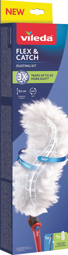 Flexibilná hlavica umožňuje utierať prach aj na ťažko dostupných miestach. Nastaviteľná dĺžka rukoväti až do 93 cm. Zachytí až 3× viac prachu než tradičná prachovka. Špeciálne potiahnuté mäkké a nadýchané vlákna zabezpečujú jemné, ale účinné čistenie. Náhrada je vyrobená zo 100 % recyklovaných vlákien. Vlákna rovnomerne obklopujú celú hlavicu v rozsahu 360°. Náhrada sa na prachovku jednoducho navlečie a zaistí pomocou háčika. V balení s dlhou prachovkou je 1 kus náhrad.