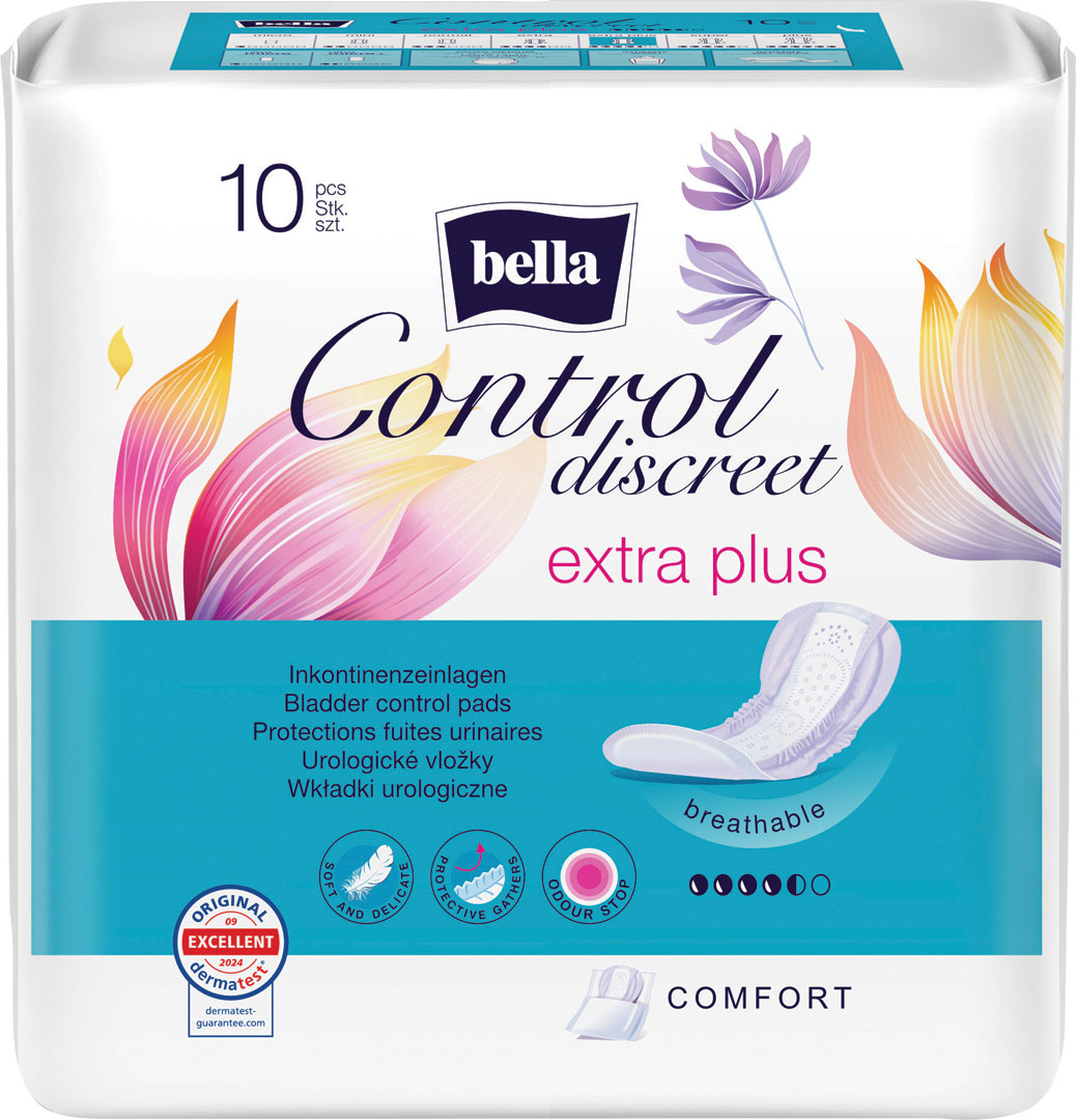 Inkontinenčné vložky Bella Control Discreet sú navrhnuté pre ženy, ktoré vedú aktívny spôsob života, cenia si komfort a bezpečnosť spojenú s diskrétnosťou. Priedušné, anatomicky tvarované urologické vložky Bella Control Discreet sú ideálnym riešením pre ženy s ľahkou formou inkontinencie. Zabezpečujú lepšiu ochranu pri inkontinencii moču ako klasické menštruačné vložky. Neutralizujú nepríjemný zápach, vďaka bočným volánikom chránia pred pretečením, vďaka rýchlej a efektívnej absorbcii minimalizujú riziko vzniku alergických reakcií.