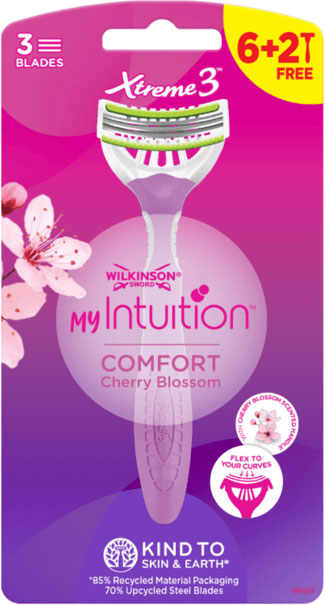 Jednorazový dámsky holiaci strojček Wilkinson Xtreme3 Intuition Comfort Cherry Blossom s 3 flexibilnými čepieľkami sa postarajú o bezchybné oholenie. S pohyblivou hlavicou, ktorá sa prispôsobí kontúram tela. Rukoväť vydáva jemnú vôňu čerešňových kvetov. 6+2 v balení.