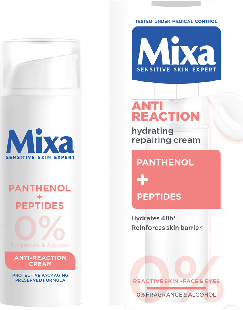 Mixa hydratačný regeneračný krém Mixa Anti-Reaction s pantenolom a peptidmi vhodný pre citlivú pleť 50 ml