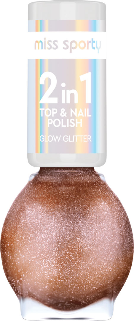 Kolekcia lakov na nechty Miss Sporty Glow Glitter 2v1 je jedinečnou edíciou odtieňov s trblietavými časticami. Laky 2v1 môžete používať samostatne alebo ako vrchný lak v kombinácii s inými lakmi Miss Sporty a dosiahnuť tak nielen jeden, ale hneď niekoľko úchvatných efektov. Unikátne zloženie zabezpečuje rýchlu aplikáciu aj schnutie a výsledný vzhľad vydrží až 5 dní.