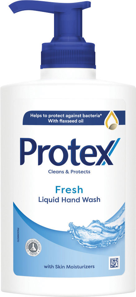 Starajte sa o svoju pokožku pri každom umývaní rúk s tekutým mydlom Protex Fresh. Toto tekuté mydlo na ruky je vyrobené z ingrediencií z 95 % prírodného pôvodu* a obsahuje hydratačné zložky – ľanový olej a glycerín. Má tiež príjemnú osviežujúcu vôňu.
