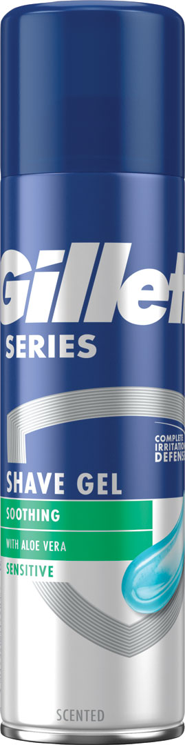 Neuveriteľne hladké oholenie s pánskym gélom na holenie citlivej pokožky Gillette Series Sensitive. Jeho zloženie s trojnásobným účinkom a s obsahom aloe upokojuje pokožku pre chladivé a komfortné holenie, hydratuje ju počas holenia a pomáha ju chrániť pred podráždením.