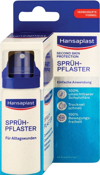 Náplasť v spreji na ochranu a ošetrenie drobných, povrchových a suchých rán. Na každodenné poranenia.Hansaplast náplasť v spreji je určená na ochranu a ošetrenie drobných, povrchových, suchých každodenných poranení, ako sú škrabance, rezné rany alebo odreniny. Po aplikácii produkt rýchlo zaschne a zanecháva neviditeľný, pružný, tenký a vodeodolný film, ktorý ranu zakrýva a chráni.