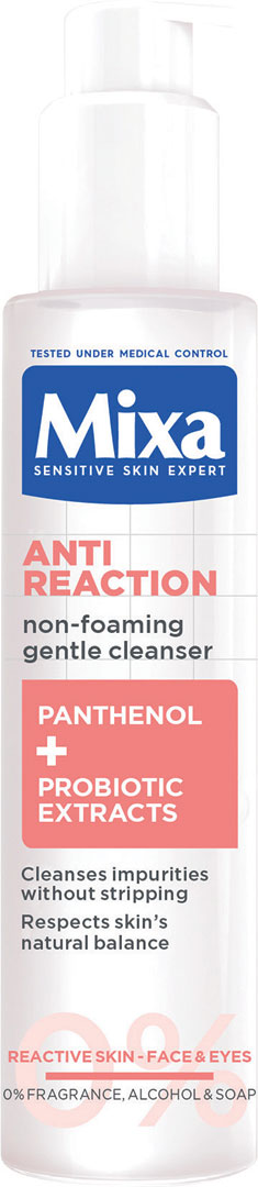 Mixa Anti-Reaction upokojujúci nepenivý čistiaci gél s pantenolom, vhodný pre citlivú pleť 150 ml