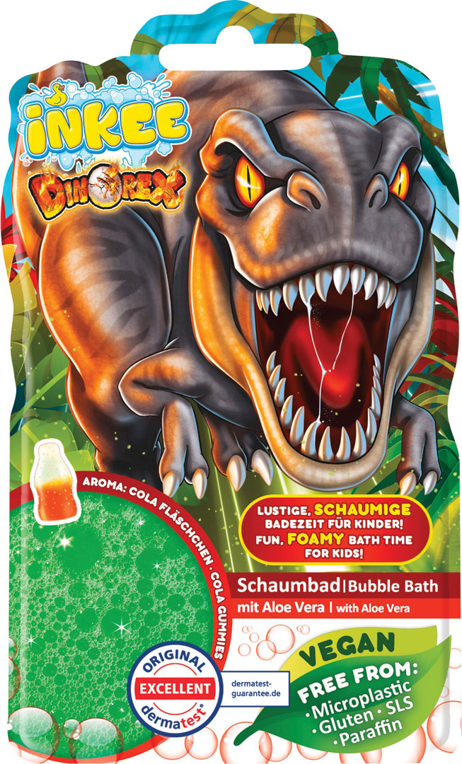 Vychutnajte si zábavné a voňavé kúpanie s našou penovou kúpeľovou prísadou INKEE – Dinorex! Tento tekutý gél vytvára bohatú a penovú penu s lahodnou vôňou kolových gumených cukríkov a jasne zelenou farbou.