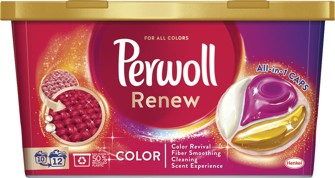 Objavte nové pracie kapsuly Perwoll Renew & Care CPS - tá najlepšia starostlivosť o vaše obľúbené odevy pohodlným spôsobom. Tieto nové trojkomorové kapsuly boli špeciálne vyvinuté, aby sa aktívne starali a obnovovali vaše oblečenie už od prvého prania. Nielenže šetrne čistia vaše oblečenie, ale zároveň obnovujú jeho žiarivé farby a vlákna. Zloženie obsahuje ošetrujúce zložky, ktoré poskytujú: