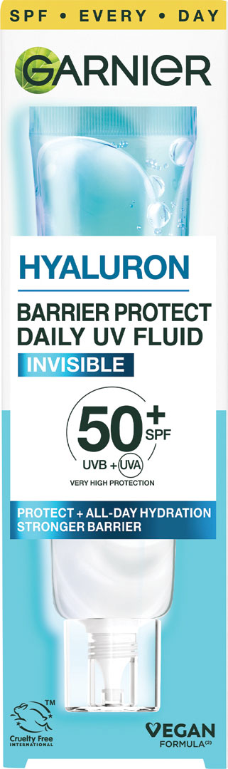 Hydratačná sila KYSELINY HYALURÓNOVEJ a GLYCERÍNU v kombinácii s SPF50+ (veľmi vysoká ochrana) v ľahkom dennom fluide. Pokožka je okamžite hydratovaná, hladšia a pružnejšia. Kožná bariéra je chránená. Neviditeľný finiš bez bieleho nádychu. Nelepivý a nemastný, odolný voči potu. Nekomedogénny. Dermatologicky testovaný a vhodný na citlivú pokožku. Nadmerná expozícia na slnku je nebezpečná. Nevystavujte dojčatá a malé deti priamemu slnečnému žiareniu. Nezostávajte na slnku dlho, aj keď používate ochranný prostriedok. Tento produkt nepredstavuje 100% ochranu. Aplikujte ochranný prostriedok pred expozíciou na slnku. Na udržanie ochrany aplikujte opakovane produkt v dostatočnom množstve, najmä pri potení, kúpaní alebo sušení uterákom. Deti chráňte pokrývkou hlavy, tričkom a okuliarmi. Upozornenie: zníženie tohto množstva značne zníži úroveň ochrany. Vyvarujte sa slnečnému žiareniu počas najvyššej slnečnej aktivity. Používajte produkt, ktorý je vhodný pre typ vašej pokožky.Na udržanie ochrany aplikujte opakovane produkt v dostatočnom množstve.* Nevystavujte dojčatá a malé deti priamemu slnečnému žiareniu. Upozornenie: zníženie tohto množstva značne zníži úroveň ochrany. Tento produkt nepredstavuje 100% ochranu. Nadmerná expozícia na slnku je nebezpečná.