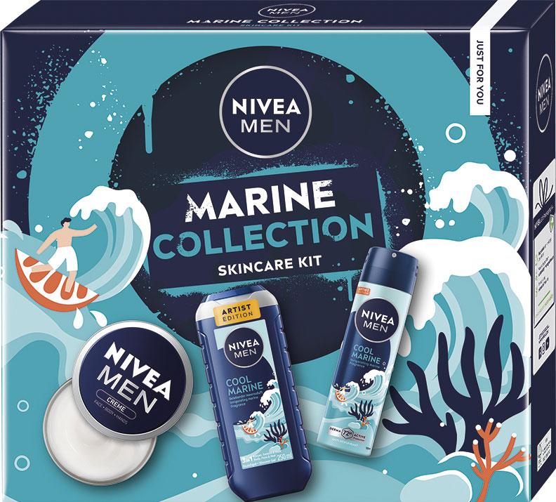Preneste ho na chvíľu do krajín, kde sa starosti rozplynú vo víre morskej vody. S darčekovým balíčkom NIVEA MEN Marine Collection tento rok na Vianoce rozhodne nesiahnete vedľa. Obsahuje kompletnú starostlivosť, ktorú moderný muž v kúpeľni potrebuje. Poriadnou dávkou energie ho naplní sprchovací gél 3 v 1 morskej vôni. Šetrne umyje aj tvár a vlasy.