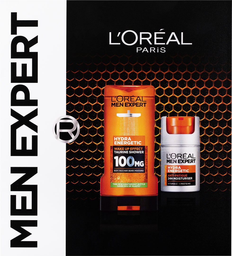Vianočný balíček pre mužov s produktmi z radu Men Expert Hydra Energetic obsahuje hydratačný krém proti únave s vitamínom C a kofeínom, sprchový gél so 100 mg taurínu, ktorý hydratuje a okamžite osviežuje pokožku.