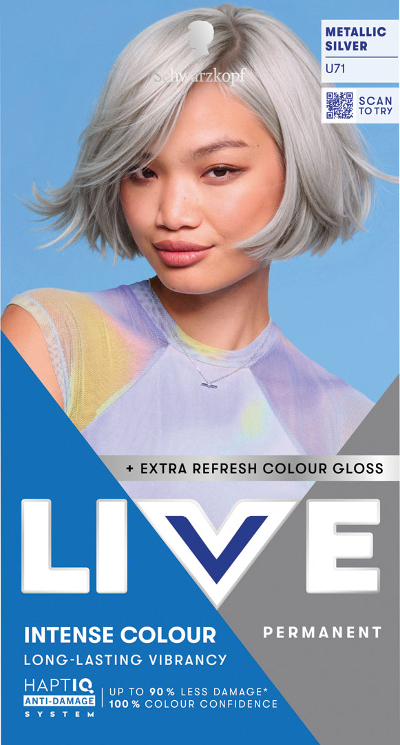 Nájdi svoj dokonalý odtieň v našej širokej ponuke farieb. Intenzívne farby Schwarzkopf LIVE s HaptlQ Anti-Damage systémom zaisťujú až 8 týždňov nezastaviteľnej farby vlasov a zároveň obnovujú vlasové väzby. Táto farba na vlasy obsahuje navyše farbiaci glossing pre obnovu farby, aby žiarila ako prvý deň po farbení. Použi po 3-4 týždňoch po farbení pre maximálne zvýšenie žiarivosti.