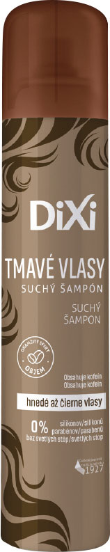 Dixi Tmavé vlasy suchý šampón dodá vlasom objem, sviežosť a vôňu. Obzvlášť vhodný na mastné vlasy.