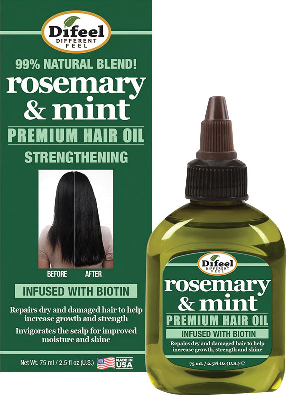 Vlasový olej Difeel Hair Oil Rosemary Mint s rozmarínom a mätou pomáha obnoviť suché, poškodené vlasy, aby znovu nadobudli svoju pôvodnú silu a lesk.