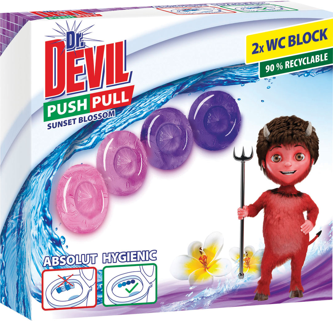 Čističe Dr. Devil - udržujte vaše WC a kúpeľňu dlhodobo čisté s prípravkami Dr. Devil. Čističe Dr. Devil pre vás vyrábame so zameraním na maximálnu účinnosť a ľahkosť použitia. Čističe a gély Dr. Devil kompletne ochránia WC a zbavia ho vodného kameňa. Univerzálny čistiaci prostriedok Dr. Devil s dlhotrvajúcou vôňou odstráni mastnotu i nečistoty. Zanechá tak všetky omývateľné plochy čisté a žiarivo lesklé.