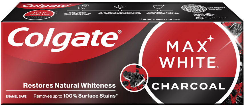 Žiarivejší úsmev vďaka zubnej paste Colgate Max White Charcoal Whitening. Klinicky overené zloženie obsahuje aktívne uhlie a minerálne mikročastice, ktoré jemne odstraňujú 100 % povrchových škvŕn a obnovujú prirodzenú belosť vašich zubov. Vlastnosti: Je klinicky overené, že odstráni povrchové škvrny. Obsahuje aktívne uhlie Jemné minerálne mikročastice Bezpečné pre zubnú sklovinu pri každodennom použití