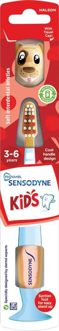 Zubná kefka Sensodyne Pronamel Kids je špeciálne vyvinutá v spolupráci s odborníkmi. Má zaoblené konce štetín, ktoré zabezpečujú šetrné čistenie zubov. Odpružený krčok pomáha zmierniť nadmerný tlak a chrániť ďasná. Obsahuje praktický cestovný kryt v tvare zvieratka. Recyklovateľný obal.