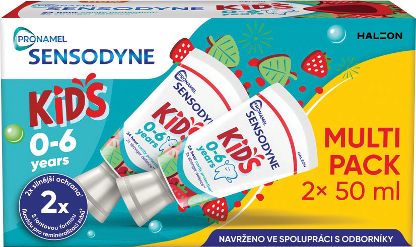 Zubná pasta Sensodyne Kids je navrhnutá v spolupráci so zubnými lekármi na ochranu tenkej detskej zubnej skloviny a na boj proti zubnému kazu. Sensodyne Pronamel Kids je detská zubná pasta s fluoridom, ktorá má 100 % prírodnú chuť a farebné prevedenie.